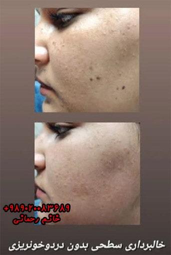 احساس سوزش کوتاهمدت، پوستهریزی و افتادن خال در ۱۰–۱۴ روز